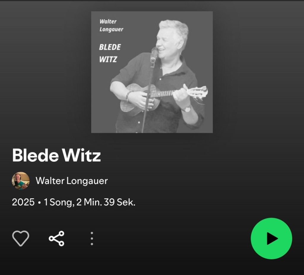 Musik, Wienerlied Die neue Single endlich auch auf Spotify, iTunes etc. Posted on 17. Dezember 202517. Dezember 2025 by walterlongauer in Musik, Wienerlied Viel Spaß! Teilen mit: Zum Teilen auf Mastodon klicken (Wird in neuem Fenster geöffnet) Mastodon Klicken, um auf Bluesky zu teilen (Wird in neuem Fenster geöffnet) Bluesky Klick, um auf LinkedIn zu teilen (Wird in neuem Fenster geöffnet) LinkedIn Gefällt mir Wird geladen … Ähnliche Beiträge