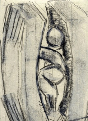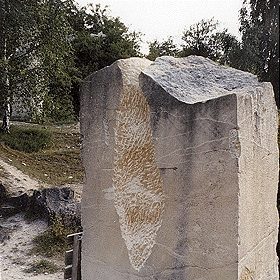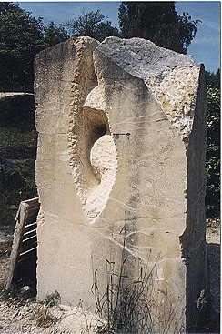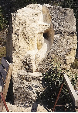 Sandstein-Skulptur “Aufbruch” (2000) im Römersteinbruch St.Margarethen (Burgenland) –Arbeit in fünf Dimensionen: Höhe, Breite, Tiefe, Licht und Material