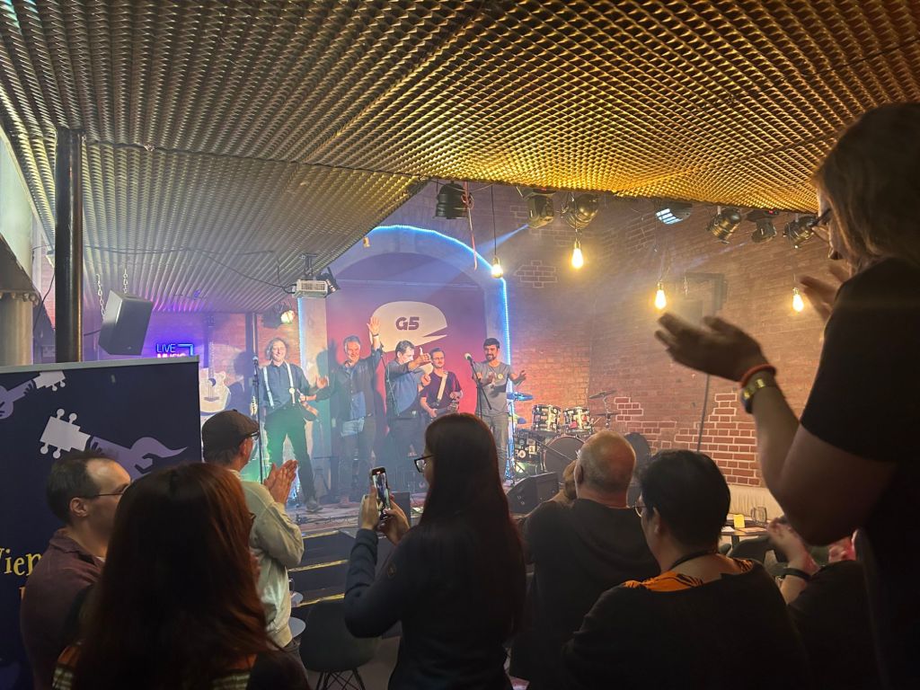 Pre-Party als Auftakt zu den Vienna Ukulele Nights 2025. Und die SALATBAR durfte den Hauptact geben. Da war alles dabei: Das Nervenflattern davor bis man dann endlich auf der Bühne steht und klar ist dann tatsächlich eine Saite auf meiner Cigar Box Ukulele gerissen. Ein Drama, das dank der fantastischen Tontechnik und einer vorsorglich mitgebrachten Ersatzukulele bei Performance und Publikum kaum Spuren hinterlassen hat – also Happy End am End 🙂 Fazit: Eine tolle Location mit perfekt ausgestatteter Bühne und wunderbaren Menschen, die für super Sound und Support sorgen. Mit der Band und dem Publikum dazu – – – so geht Rock n Roll!