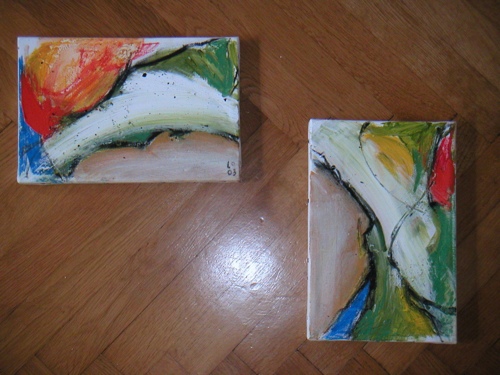Malerei Freie Stücke Abstrakte Arbeiten – Experimente mit Form, Farbe und Material, immer auf der Suche nach dem visuellen Gleichgewicht.