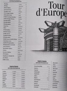 Alles angerichtet für eine legendäre Visualisierung, könnte ein Fußballfest für Statistik-Fans werden: Eine Doppelseite voll gepackt mit spannenden Daten zu Schauplätzen von UEFA Finalspielen. Auch mit viel Liebe gestaltet, aber dennoch schade drum! Einfach mit mehreren Europakarten hätten die Städte mit den häufigsten Finali auf den ersten Blick gezeigt und in den unterschiedlichen Kategorien verglichen werden können. Ohne die Tabellen durchzulesen wäre z.B. auch das Ernst-Happel-Stadion als prominenter Austragungsort ins Auge gesprungen! Vielleicht hätten es auch ein paar Daten weniger getan, also wirklich nur die Top-Stadien aber dafür anschaulicher…eine Infografik ist immer der richtige Joker im Finale, lieber Ballesterer!
