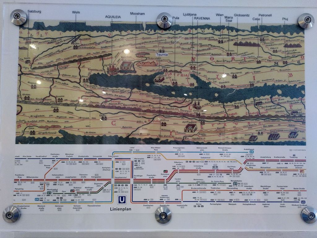 U-Bahn Pläne im Alten Rom? Gar nicht so weit hergeholt! Im Römermuseum Teurnia in Kärnten ist die mittelalterliche Replik einer römischen Straßenkarte ausgestellt und mit einem modernen U-Bahn Plan verglichen. Das infografisch Wertvolle da wie dort: Die Konzentration auf die Frage „Welche Information ist entscheidend und welche Details verstellen den Blick?“ Die Verbindung der antiken Städte durch Römerstraßen und die Stationen im U-Bahn-Netz haben eindeutzmehr praktischen Nutzen als die geografisch korrekten Gegebenheiten. Ein ebenso überraschender wie inspirierender Fund, umso mehr, dass die Historiker:innen bei der Gestaltung der Ausstellung diese Parallele erkannt und hervorgehoben haben. Sehr schön!