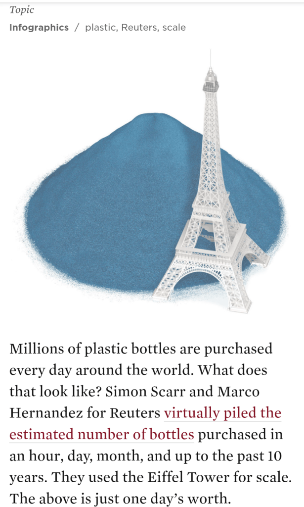 Um eine Zahl begreifbar zu machen gibt es nichts Anschaulicheres als den Größenvergleich mit allseits bekannten Bauwerken, Dingen des Alltags etc. Sieht ganz einfach aus, dahinter steckt jedoch jede Menge Rechenarbeit, Design und…die Idee musst du auch erst einmal haben 🙂 So gesehen bei Flowingdata, immer eine gute Inspirationsquelle – danke dafür!